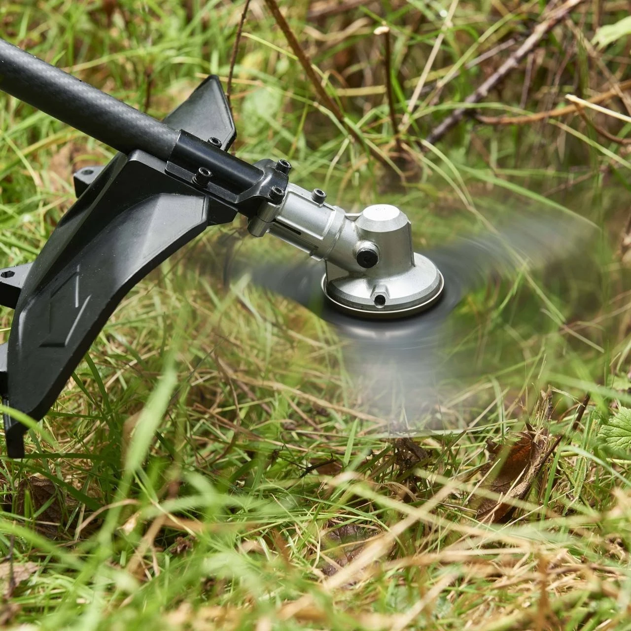 The EGO Power+ BCX3800 is equipped with a manual wind bump feed head fitted with dual nylon line. It is also supplied with a 30cm three-tooth brush cutter blade. The bike-style handlebars incorporate a variable speed trigger with safety lock-off. Unlike alloy shafts, the carbon fibre shaft is light, yet extremely strong so it won’t bend and lose its shape over time, keeping vibration levels to a minimum.