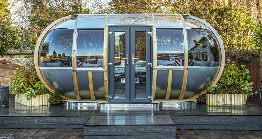Installation – An area of 470cm x 250cm is required to locate The Large Oval House. A hard standing base of no less than 365cm x 175cm is required to build your pod onto. Your building can be installed onto a level paved, concrete or decked